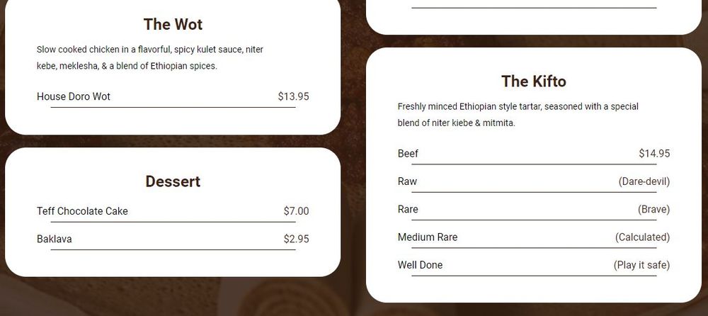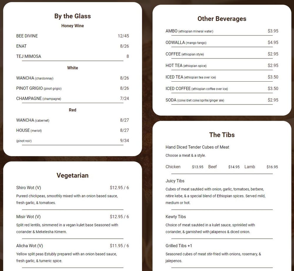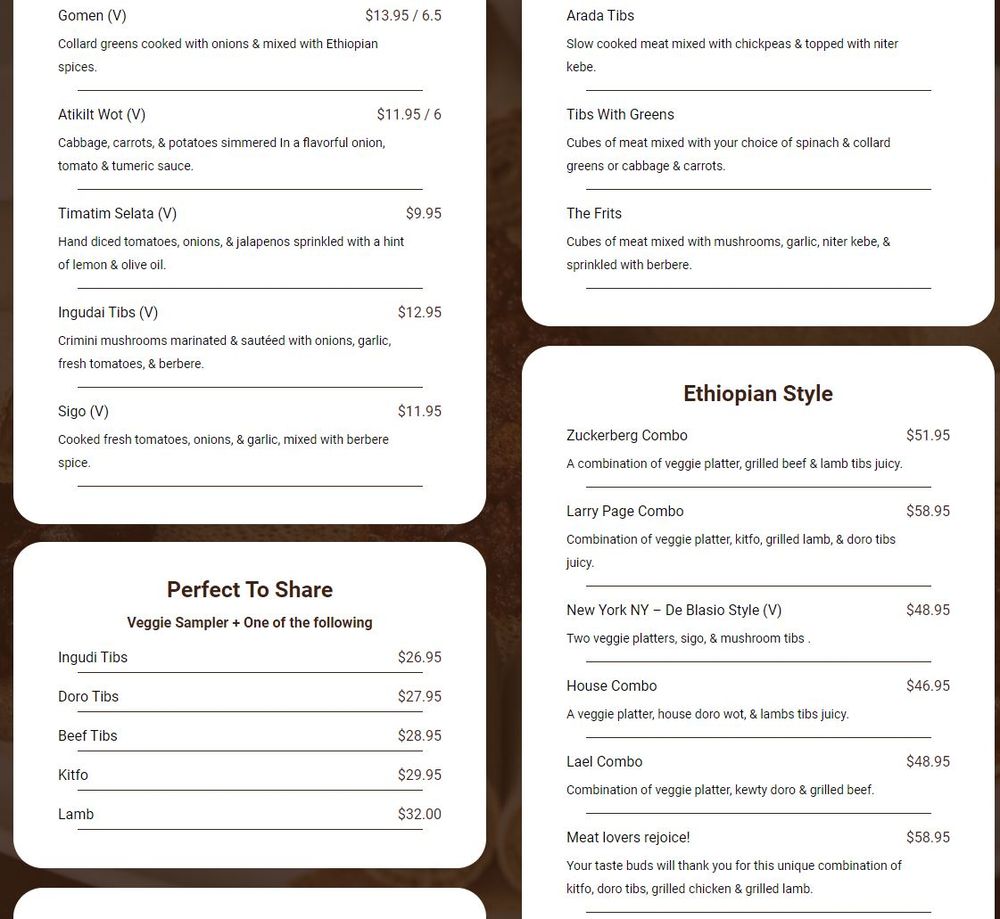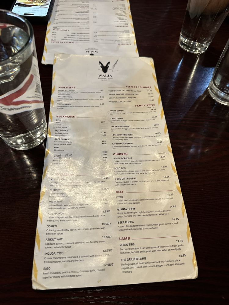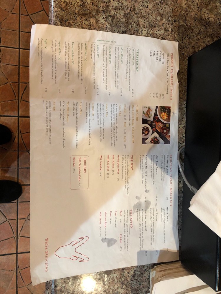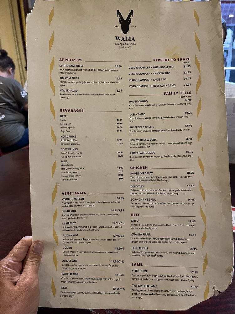 Introducing the menu at Walia Ethiopian Cuisine, located in San Jose, CA, offers a variety of traditional Ethiopian dishes with options for vegans and vegetarians. From flavorful appetizers like Chicken Sambusa and House Salad to perfect shares for two like the Veggie Sampler with options for lamb, beef, or chicken tibs. Vegetarian dishes include Misir Wot, Alicha Kik, and more. Customers rave about favorites like the Larry Page Combo and the Gomen dish. With excellent service and a cozy atmosphere, Walia Ethiopian Cuisine is a must-visit for those looking to explore the rich flavors of Ethiopian cuisine.